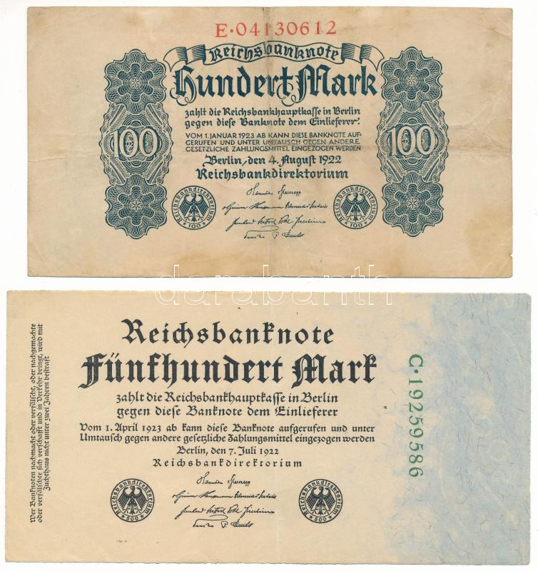 Germany / Weimar Republic 1922. 100 Mark + 500 Mark C:F