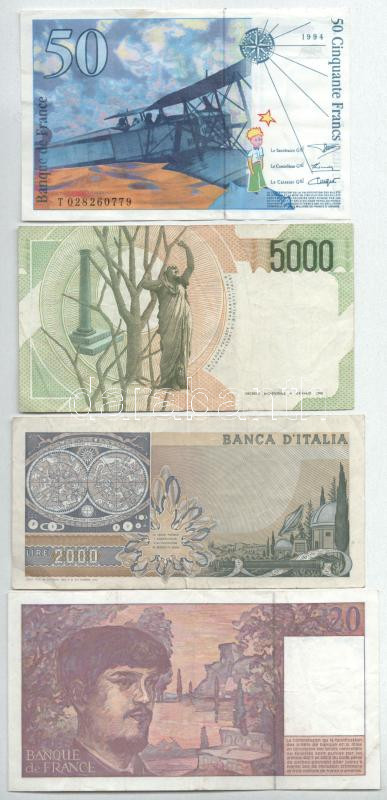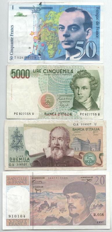Olaszország 1973. 2000L + 1985. 5000L + Franciaország 1994. 50Fr + 1997. 20F T:F