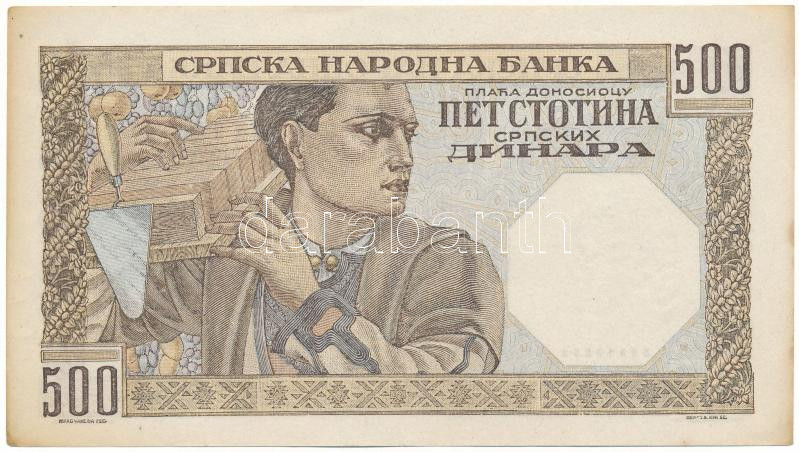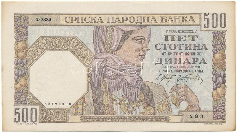 Szerbia 1941. Német megszállás 500D "F.2339 283", (Női fej v... https://www.darabanth.com/en/514-Auction-philately-postcards-numismatics-artwork-books-colletibles-jewelry/515.0/Numismatics/Worldwide-banknotes~1316/Szerbia-1941-Nemet-megszallas-500D-F2339-283-Noi-fej-vizjellel-TF-szep-papir3Cbr-3E-~II3419437