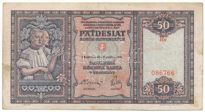 Slovakia 1940. 50 Korun "Hv 086766" C:F multiple spots