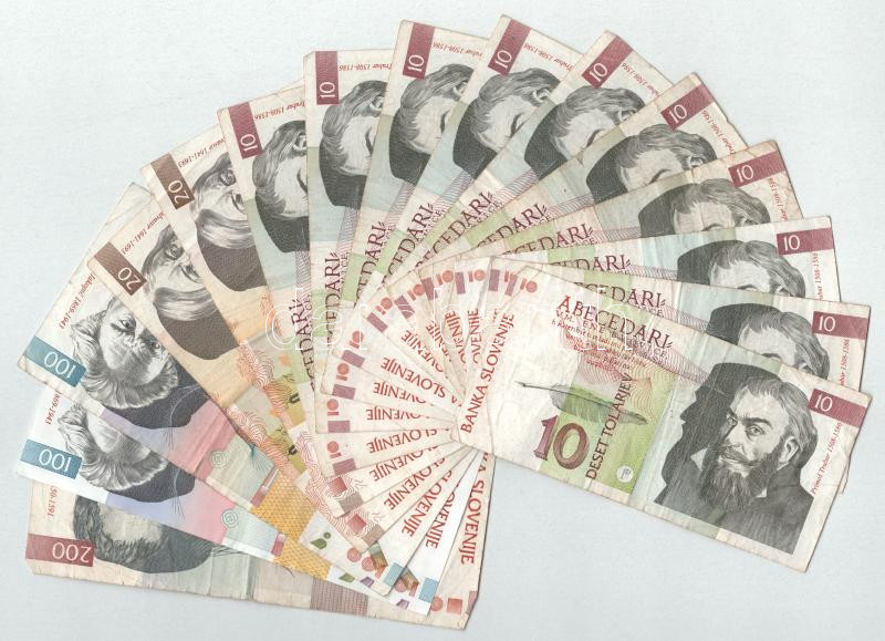 https://www.darabanth.com/en/514-Auction-philately-postcards-numismatics-artwork-books-colletibles-jewelry/515.0/Numismatics/Worldwide-banknotes~1316/Szlovenia-1992-10T-10x-plus-20T-2x-plus-100T-2x-plus-1997-200T-TF-VG-kozte-szep-papir3Cbr-3E-Slo~II3476637