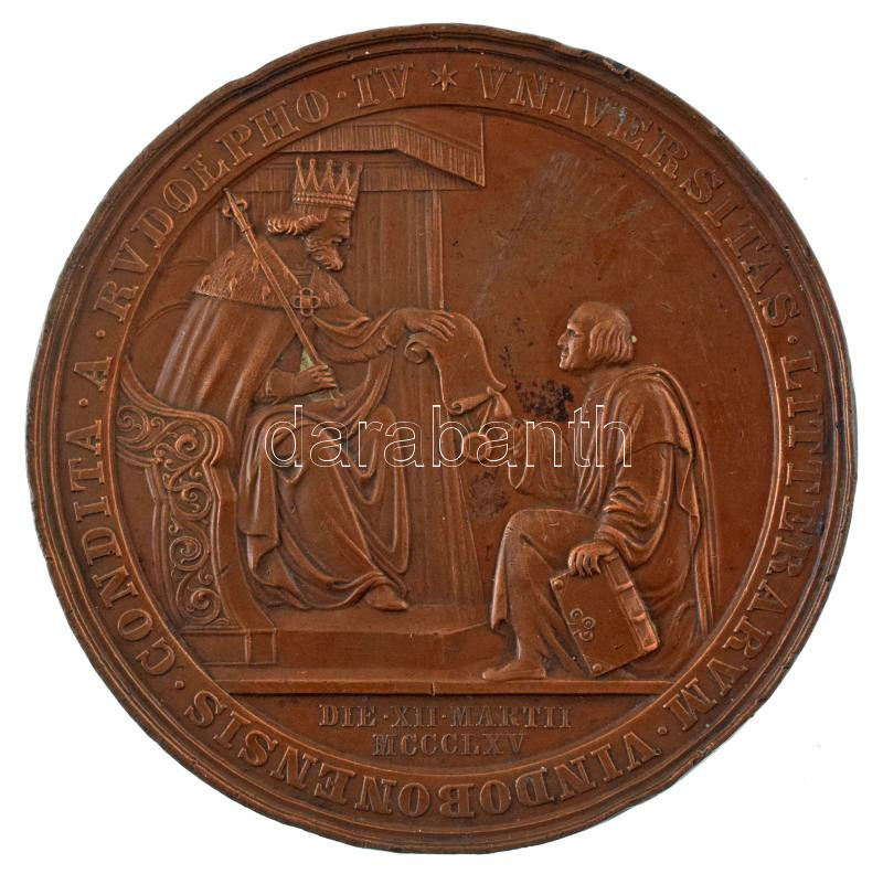 Ausztria 1865. "Bécsi Egyetem 500. évfordulója" bronz, vert, kétoldalú emlékérem "VNIVERSITAS LITTERARVM VINDOBONENSIS CONDITA A RVDOLPHO IV / IN MEMORIAM SECVLI V FRANCISCO IOSEPHO I IMPERATORE". Szign.: Carl Radnitzky (79mm) T:AU,XF ph. / Austria 1865. "500th Anniversary of Vienna University" bronze, struck, double-sided commemorative medal Sign.: Carl Radnitzky (79mm) T:AU,XF edge error