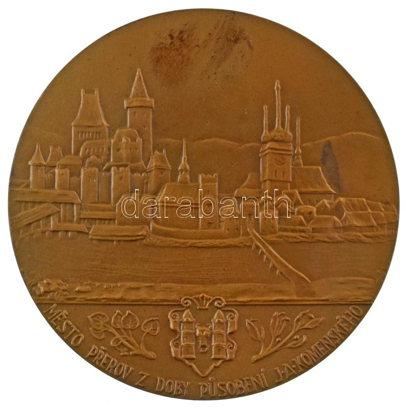Csehszlovákia 1964. "Jan Amos Komenský 1592-1670 / Město Přerov z doby působenà J.A. Komenského (Jan Amos Comenius 1592-1670 / Přerov városa J. A. Comenius idejében)" bronz emlékérem. Szign.: Josef Baják (80mm) T:AU