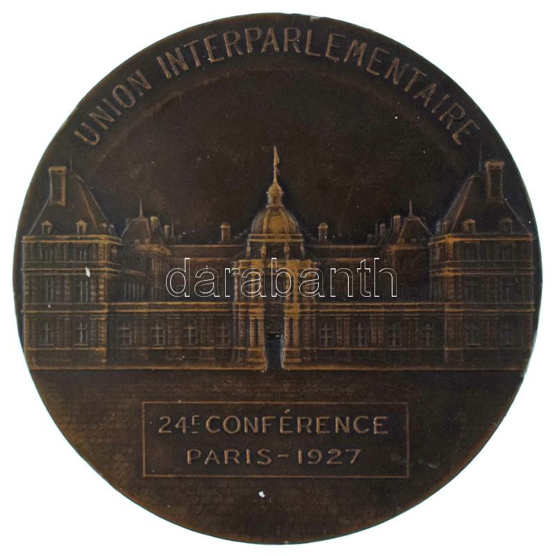 Franciaország 1927. "Union Interparlementaire 24e Conférence Paris 1927 / Republique Francaise (Interparlamentáris Unió 24. konferenciája, Párizs, 1927 / Francia Köztársaság)" bronz emlékérem (50mm) szign.: Henri Dubois T:XF kis ph.