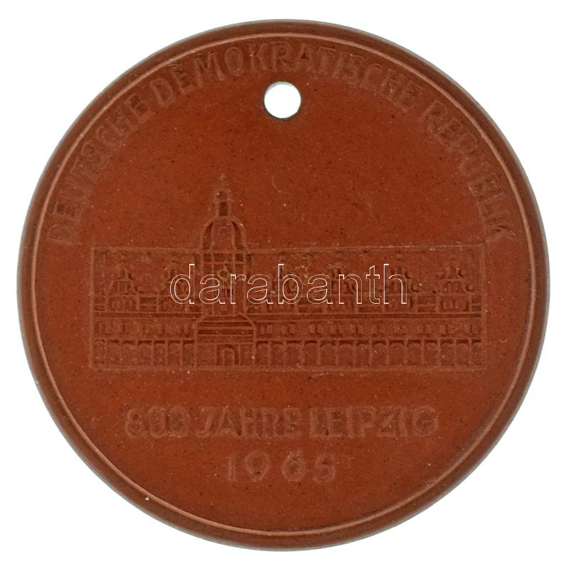 German Democratic Republic 1965. "800 Jahre Leipzig / 1165-1965" two-sided, marked porcelain commemorative medallion (40mm) C:AU, holed
