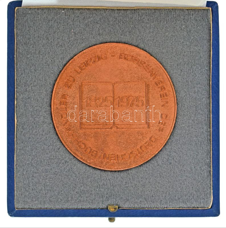 Német Demokratikus Köztársaság 1975. "Lipcsei Német Könyvkereskedők Szövetsége 1825-1975" kétoldalas Cu emlékplakett eredeti tokban, német információs lappal (63,5mm) T:AU