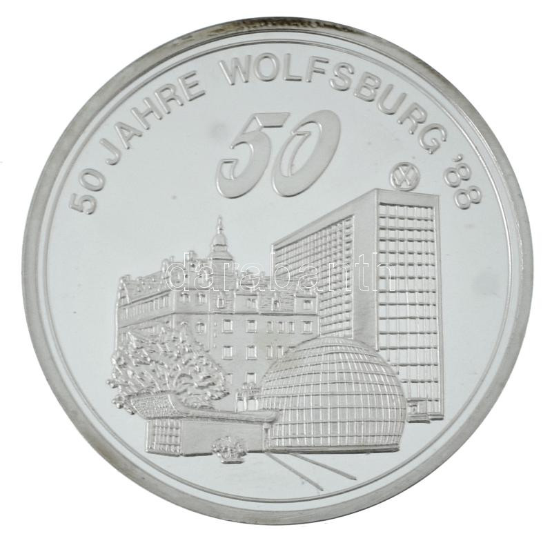 German Federal Republic 1988. "Wolfsburg - Die Volkswagenstadt / 50 Jahre Wolfsburg '88" jelzett Ag emlékérem kapszulában (~15g/0.999/35mm) C:PP