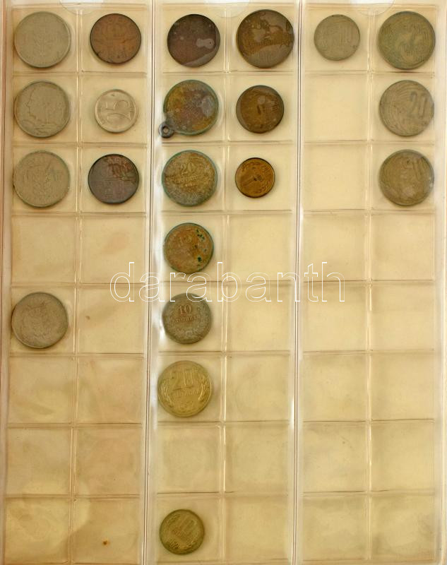 ~133db-os vegyes fémpénz gyűjtemény, benne főként cseh, holland, szovjet, és francia érmékkel. Fekete műbőr borítású albumban, oszloponként kihúzható berakólapokkal, tokkal T:vegyes