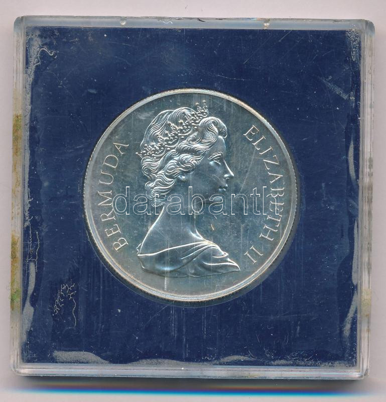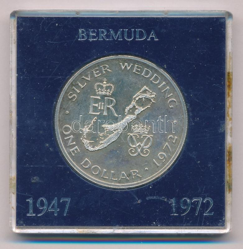 Bermuda 1972. 1D Ag "II. Erzsébet / Ezüstlakodalom" dísztokban T:BU patina