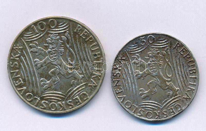 Csehszlovákia 1949. 50K Ag + 100K Ag "Sztálin" T:AU patina