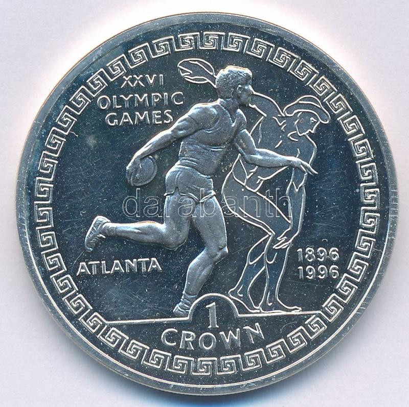 Gibraltár 1996. 1C Ag "Olimpiai Játékok Atlanta 1996 - Diszkoszvetés" T:PP felszíni karcok Gibraltar 1996. 1 Crown Ag "1996 Atlanta Olympic Games - Discus Thrower" C:PP surface scratches Krause KM#300a