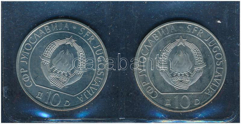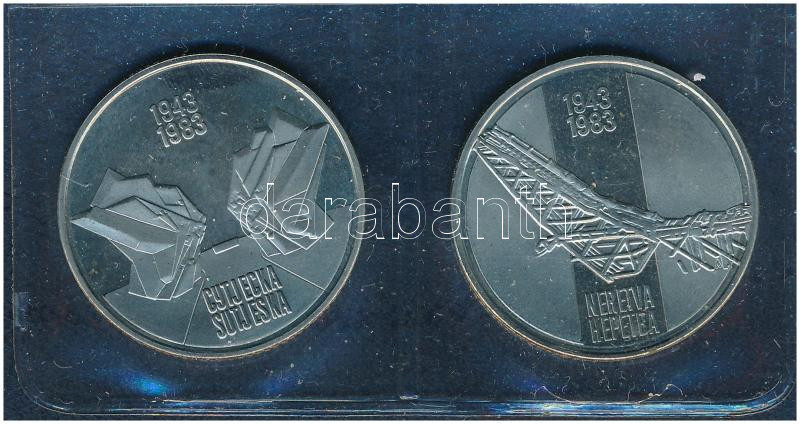 Jugoszlávia 1983. 10D Ni-sárgaréz "Neretvai csata 40. évfordulója" + 10D Ni-sárgaréz "Sutjeskai csata 40. évfordulója" közös műbőr dísztokban T:UNC,AU, kis patina