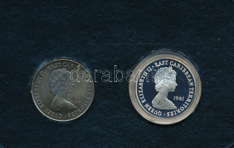 Kelet-karibi államok 1981. 10$ (2xklf) Ag + Cu-Ni "Királyi esküvő" érmepár műanyag tokban, német nyelvű ismertetővel T:AU, patina, Ag: PP kapszulában