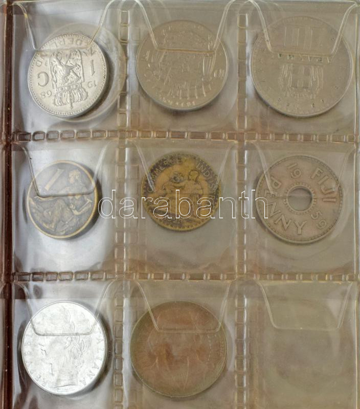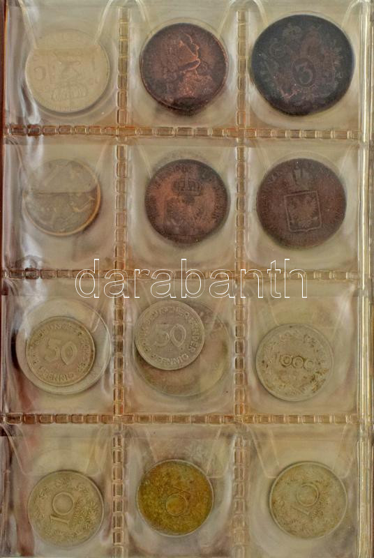 Kisalakú műbőr érmeberakó, összesen 60db férőhellyel, benne 24db vegyes külföldi érmével, közte Német Államok / Poroszország 1862A 3pf Cu "I. Vilmos", stb. T:vegyes