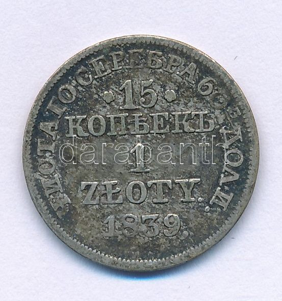 Lengyelország / Kongresszusi Lengyelország 1839. 15k/1Zl Ag Varsó T:VF... https://www.darabanth.com/en/514-Auction-philately-postcards-numismatics-artwork-books-colletibles-jewelry/515.0/Numismatics/Worldwide-silver-and-metal-coins~1317/Lengyelorszag-Kongresszusi-Lengyelorszag-1839-15k1Zl-Ag-Varso-TVF-patina3Cbr-3E-Poland-Con~II3481634