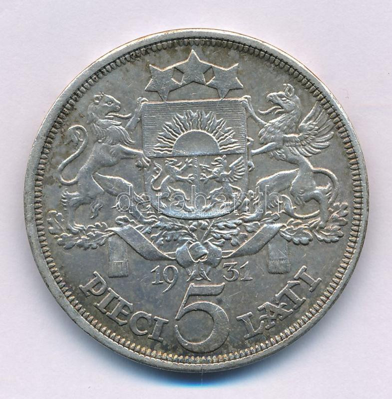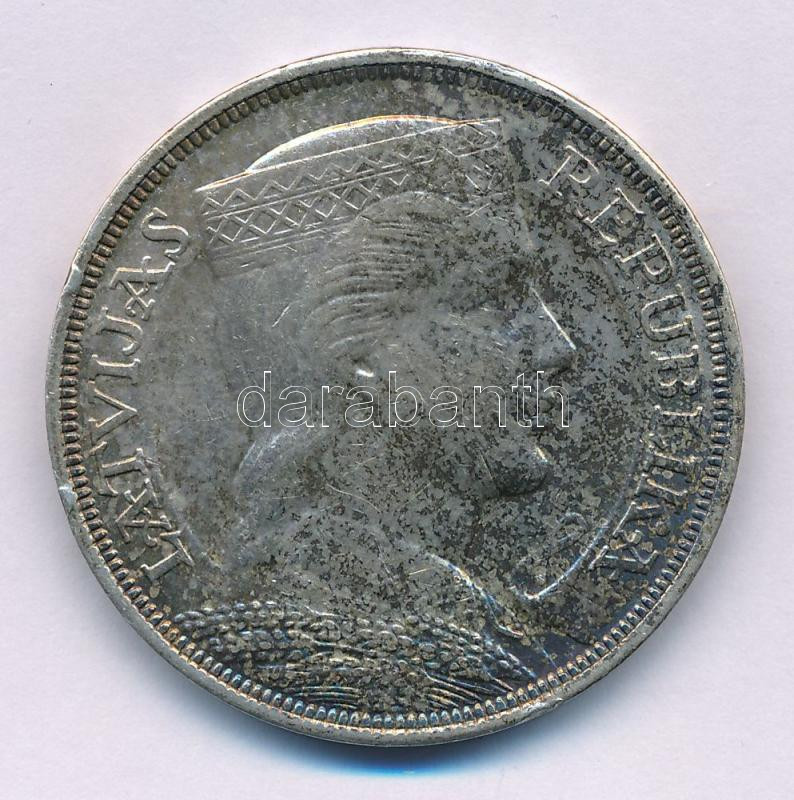 Latvia 1931. 5 Lati Ag C:XF patina