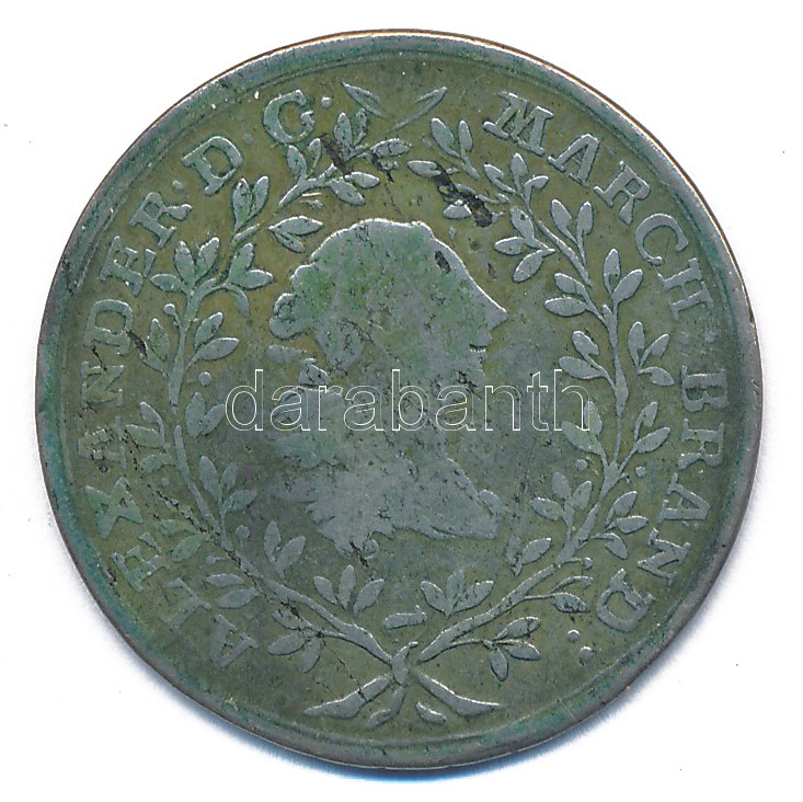 Német Államok / Brandenburg-Ansbach 1763. 20kr Ag "Alexander" T:F patina German States / Brandenburg-Ansbach 1763. 20 Kreuzer Ag "Alexander" C:F patina
