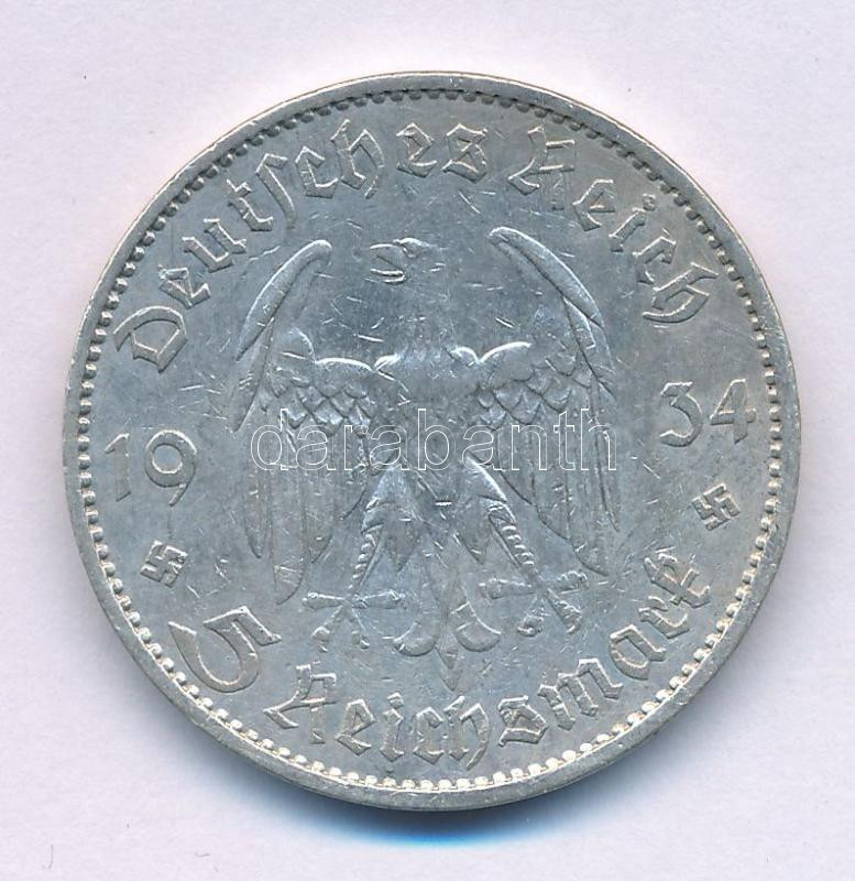 Német Harmadik Birodalom 1934A 5M Ag "Garnisonkirche" T:XF,VF