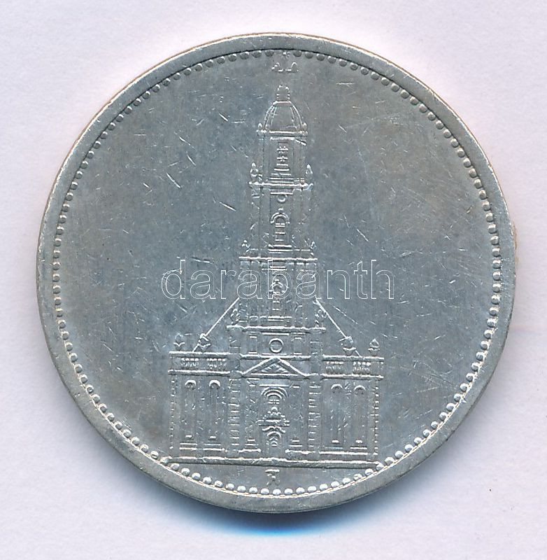 German Third Reich 1934A 5 Reichsmark Ag "Garnisonkirche" C:XF,VF