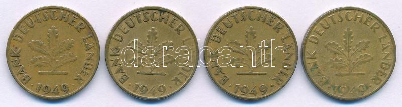 Német Szövetségi Köztársaság 1949. 10pf sárgarézzel bevont acél (4xklf verdejel: D, F, G, J) T:VF