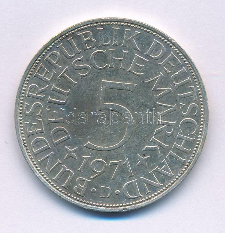 Német Szövetségi Köztársaság 1971G 5M Ag kapszulában, tanúsítvánnyal. T:XF,VF kis patina