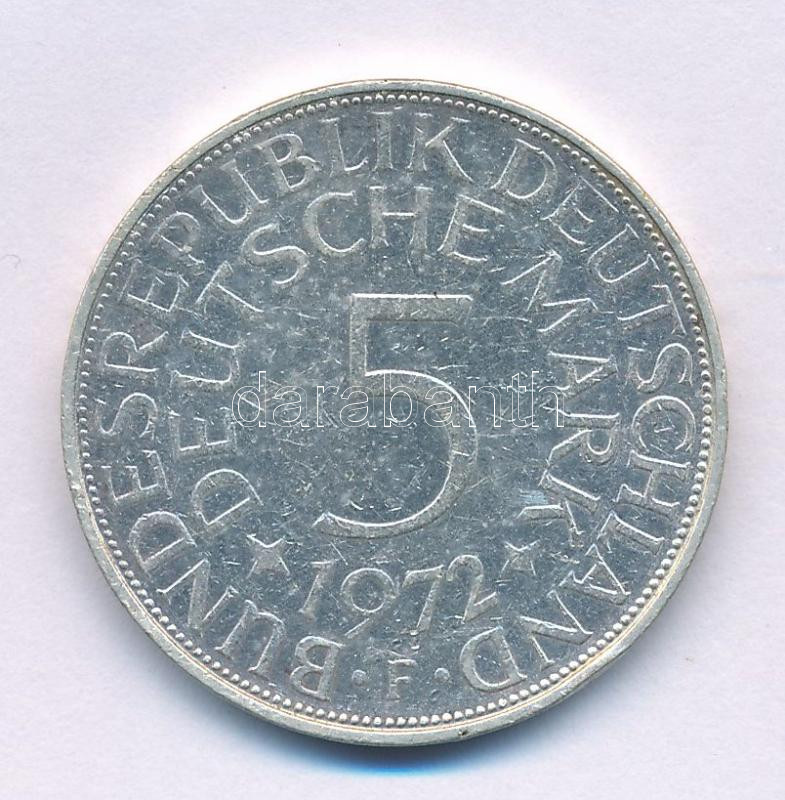 Német Szövetségi Köztársaság 1972F 5M Ag kapszulában, tanúsítvánnyal. T:XF karc