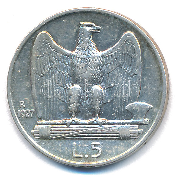 Olaszország 1927R 5L Ag "III. Viktor Emánuel" T:XF patina Italy 1927R 5 Lire Ag "Vittorio Emanuele III" C:XF patina Krause KM#67.1