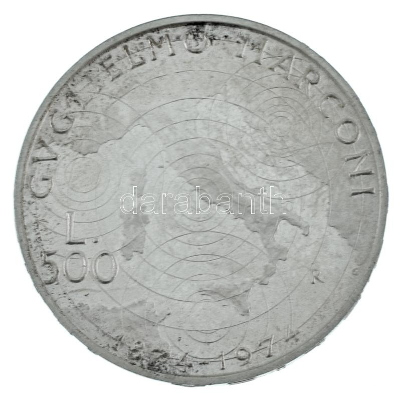 Italy 1974R 500 Lire Ag "Guglielmo Marconi" in plastic decorative case, with certificate C:AU patina