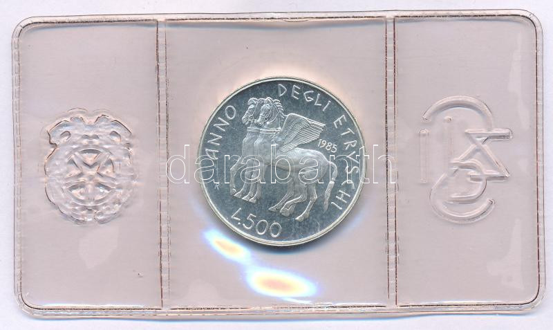 Olaszország 1985R 500L Ag "Az etruszk kultúra éve" eredeti lezárt fóliacsomagolásban és műanyag dísztokban, tanúsítvánnyal T:UNC