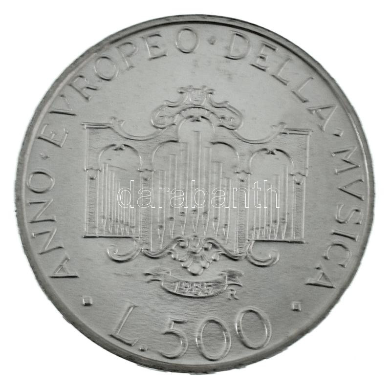 Olaszország 1985R 500L Ag "Európai zene éve" eredeti lezárt fóliacsomagolásban és műanyag dísztokban, tanúsítvánnyal T:UNC