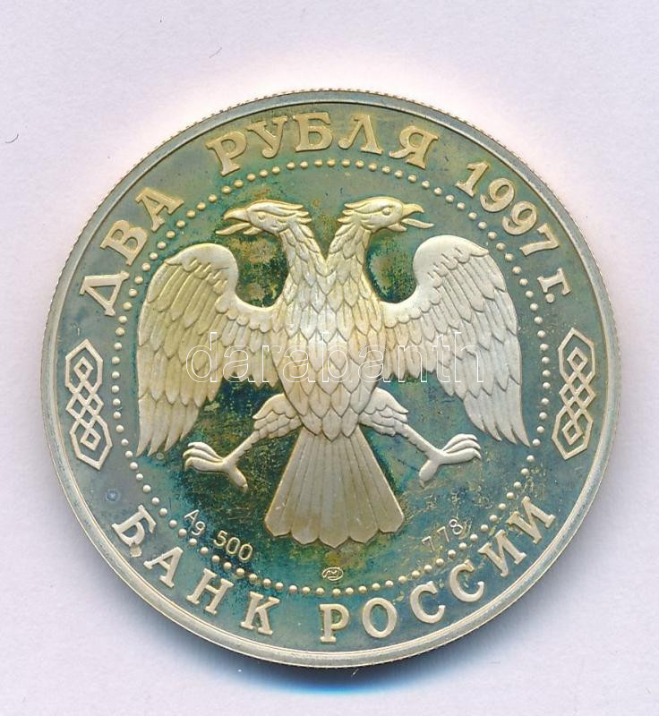 Russia 1997. 2 Rubles Ag "Nikolai Yegorovich Zhukovsky" (0,500/16,11g/32mm) in capsule C:UNC (originally PP) patina