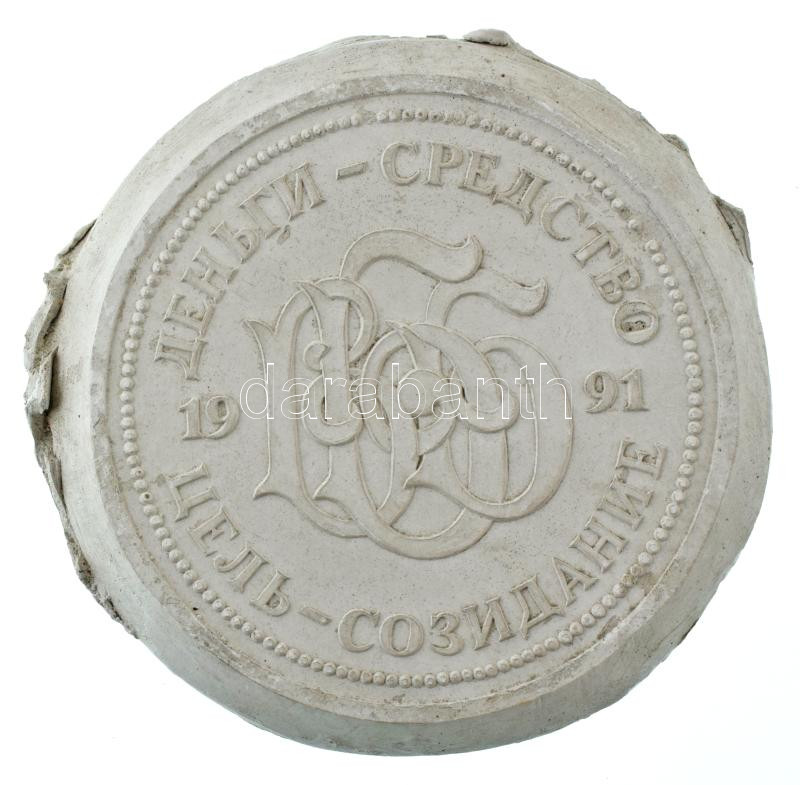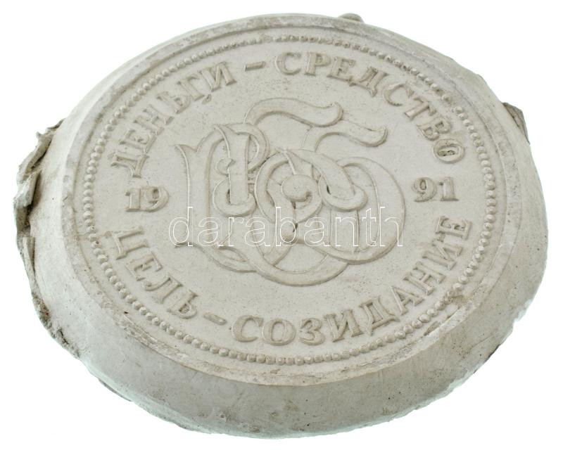 Oroszország ~1991. 5000R "All Russian Exchange Bank" érme gipsz hátlapi nagyminta tervezete (162mm) T:AU,XF ph. RRR! / Russia ~1991. 5000 Roubles "All Russian Exchange Bank" coin's reverse large plaster sample (162mm) C:AU,XF edge error RRR!