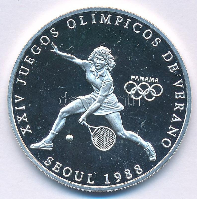 Panama 1988. 1B Ag "Nyári Olimpia 1988 Szöul - Teniszező" forgalomba nem került fantázia emlékérme T:PP karc Panama 1988. 1 Balboa Ag "Summer Olympics 1988 Seoul - Tennis player" non-circulating commemorative fantasy coin C:PP scratch Krause X#M6a