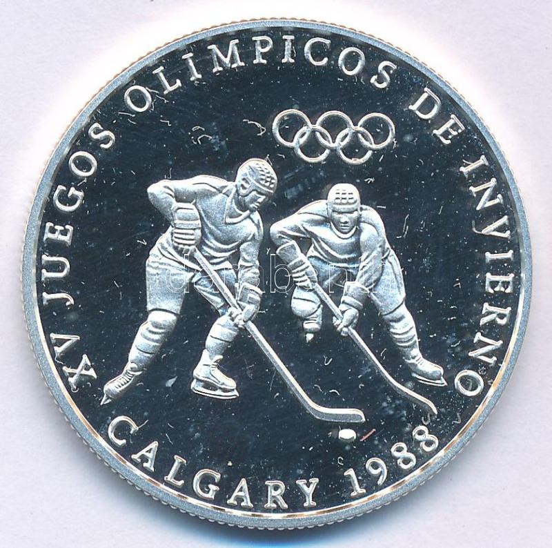 Description: Panama 1988. 1B Ag "Téli Olimpia 1988 Calgary - Jégkorong játékosok " forgalomba nem került fantázia emlékérme T:PP kis karc, folt Panama 1988. 1 Balboa Ag "Winter Olympics 1988 Calgary - Ice Hockey players" non-circulating commemorative fantasy coin C:PP small scratch, spot Krause X#M4a