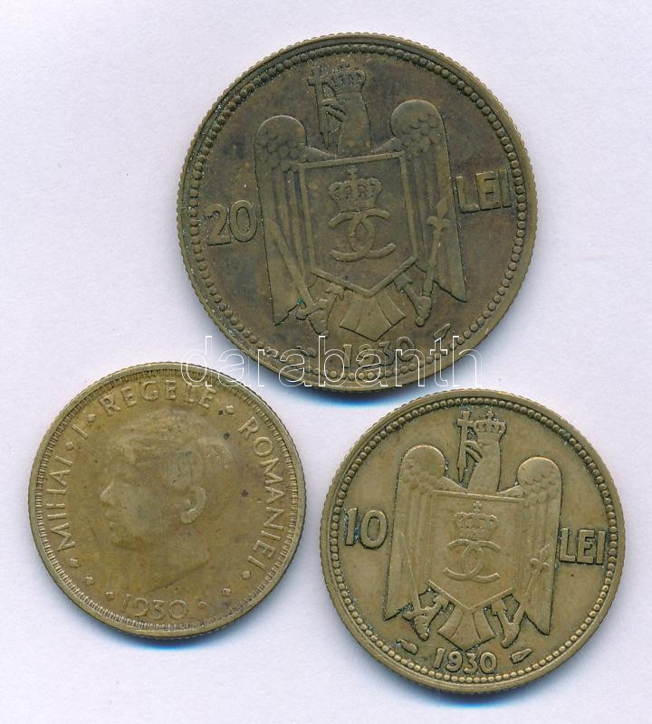 Románia 1930. 5L Ni-sárgaréz "I. Mihály" Heaton + 10L Ni-sárgaréz "II. Károly" Párizs + 20L Ni-sárgaréz "II. Károly" Párizs T:XF,VF patina