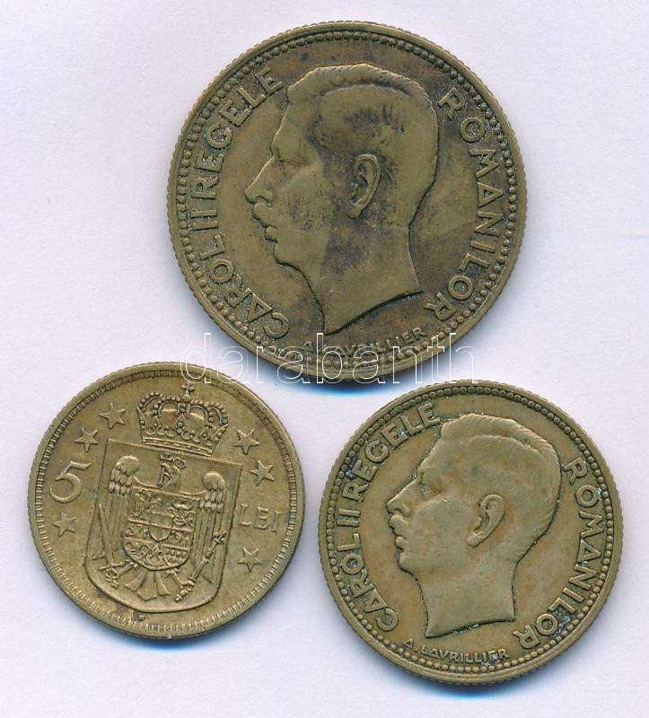 Románia 1930. 5 Lei Ni-brass "Mihai I" Heaton + 10 Lei Ni-brass "Carol II" Paris + 20 Lei Ni-brass "Carol II" Paris C:XF,VF patina