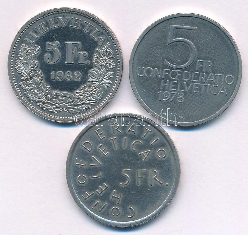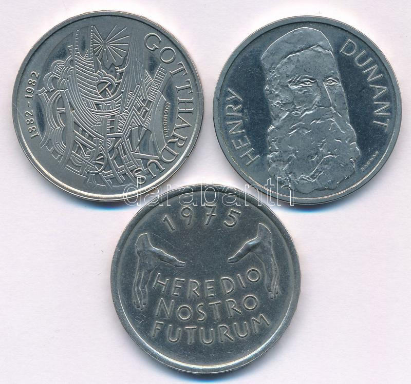 Svájc 1975. 5Fr Cu-Ni "Európai Műemlékvédelmi Év" + 1978. 5Fr Cu-Ni "Henry Dunant" + 1982. 5Fr Cu-Ni "Gotthard vasútvonal 100. évfordulója" T:AU Switzerland 1975. 5 Francs Cu-Ni "European Monument Protection Year" + 1978. 5 Francs Cu-Ni "Henry Dunant" + 1982. 5 Francs Cu-Ni "100th anniversity - Gotthard railway" C:AU Krause KM#53, KM#56, KM#61