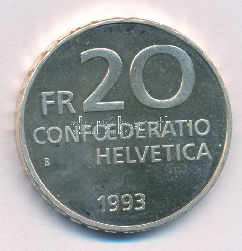 Switzerland 1993B 20 Francs Ag "Paracelsus" C:PP spotted