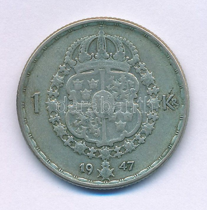 Sweden 1947TS 1 Krona billon "Gustaf V" C:VF, patina