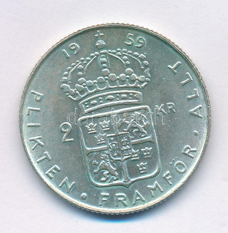 Sweden 1959TS 2 Kronor billon "Gustaf VI Adolf" C:XF