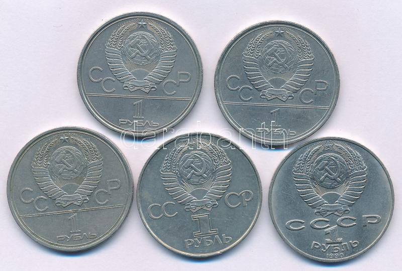 Szovjetunió 1977-1990. 1R Cu-Ni (5xklf forgalmi emlékérme), benne: "Az októberi forradalom 60. évfordulója", "Olimpia - Szputnyik és Szojuz", "Olimpia - Moszkvai Egyetem", "Olimpia - Dolgorukij-emlékmű", "Csajkovszkij" T:AU,XF