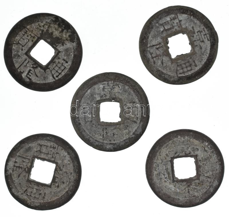Vietnam 1802-1820. 1 Cash sárgaréz "Gia Long" (5x) T:VF,F