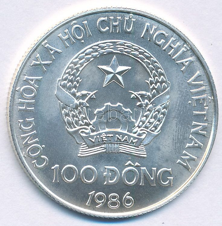 Vietnám 1986. 100D Ag "Téli Olimpia 1988 Calgary" nagyobb betűk T:BU Vietnam 1986. 100 Dong Ag "1988 Winter Olympics, Calgary" larger letters C:BU Krause KM#23.2