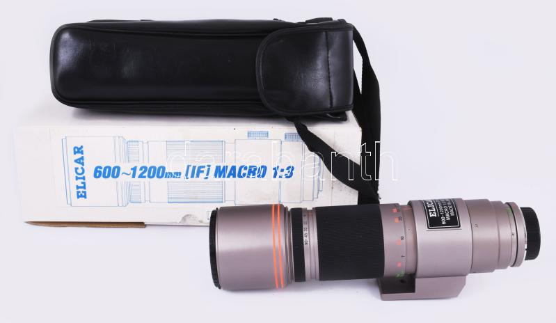Elicar 600-1200mm f/10-20 telephoto zoom. Jó állapotban, tokjában, eredeti dobozában, h: 31 cm
