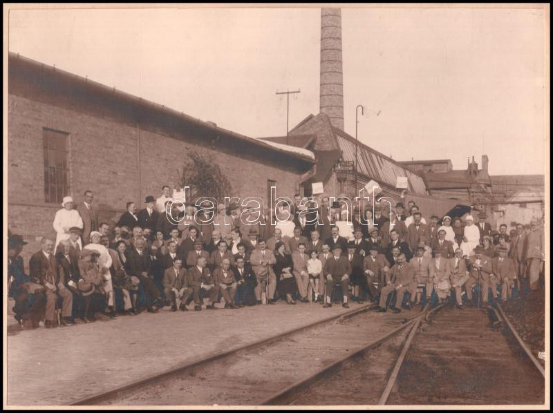 1931 Hutter és Lever rt. Magyar-Holland margaringyárak rt. a rákospalotai olajgyárben töltött délután emlékére. nagy méretű fotó, kartonon 33x25 cm