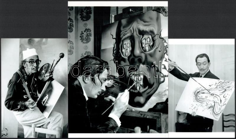 Description: Dali, Salvador (1904-1989) katalán - spanyol szürrealista festőművészről eltérő időben készült felvételek, 3 db modern nagyítás, jelzés nélkül, 21x15 cm és 15x21 cm