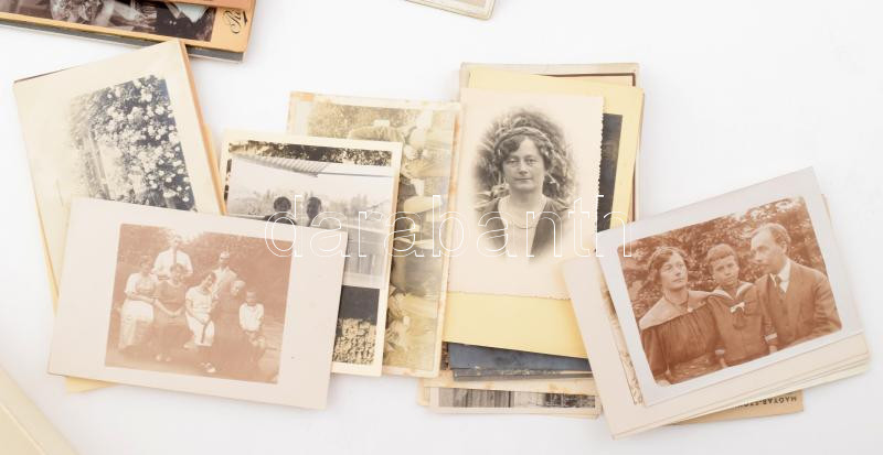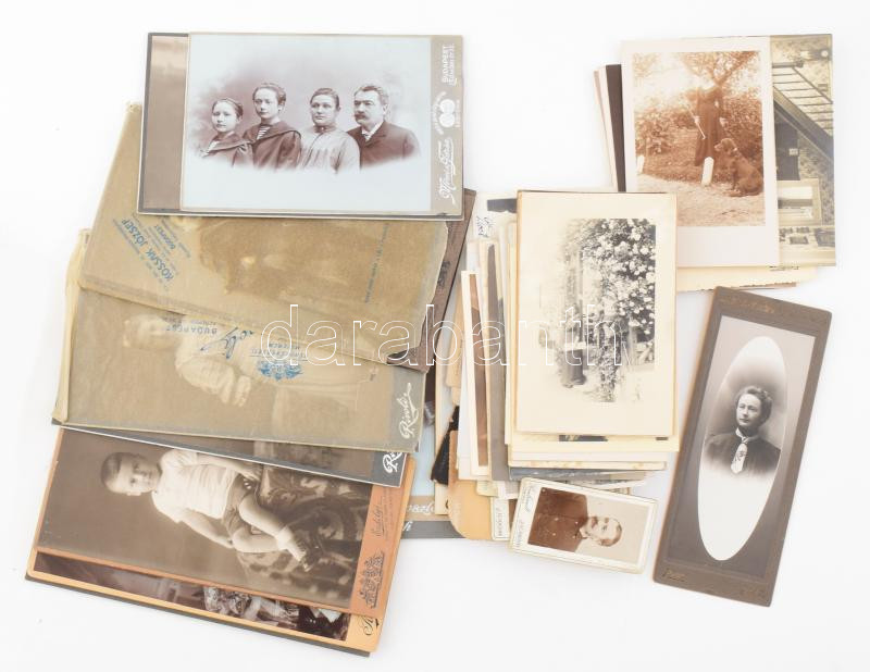 Doktorics/Doktorits/Doctorovics Benő (1879-1958) gépészmérnök, feltaláló családi fotóhagyatéka, többségében portrék és csoportképek, össz. kb. 60 db. Kisebb részben keményhátú fotók, többségében fotólapok. Keményhátú fotók neves budapesti műteremből (Erdélyi és Goszleth) és egy ritka "Rákos-forma" (Rákos ezelőtt Kozmata). Néhány kevés darabon Doktorics/Doktorits/Doctorovics Benő autográf aláírásával. 8x4,5 és 20,5x11 cm közti méretekben. Kisebb méretű kartondobozban