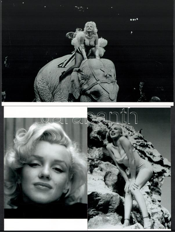 Description: Marilyn Monroe (korábban Norma Jeane) (1926-1962) amerikai színésznőről és fotómodellről készült felvételek, 3 db modern nagyítás, jelzés nélkül, 15x21 cm és 15x10 cm