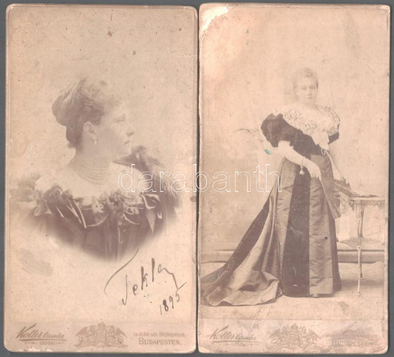 Sztankovánszky János (1848-1927) kamarás felesége, Dőry Tekla (1853-1946) csillagkeresztes hölgy 2 db keményhátú portréja, sérüléssel, 20,5×11,5 cm