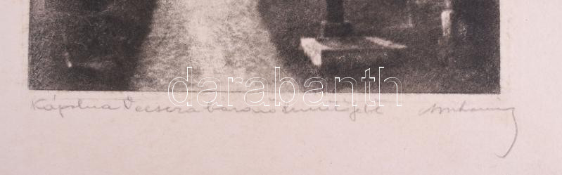 Description: ca 1930 Orphanidesz János (1876-1939): Kápolna Vecsera bárónő temetőjéből jelzett vintage fotóművészeti alkotás, művészfólián másolva, ezüst zselatinos fotópapíron, képméret 17x25 cm, papírméret 25x36 cm